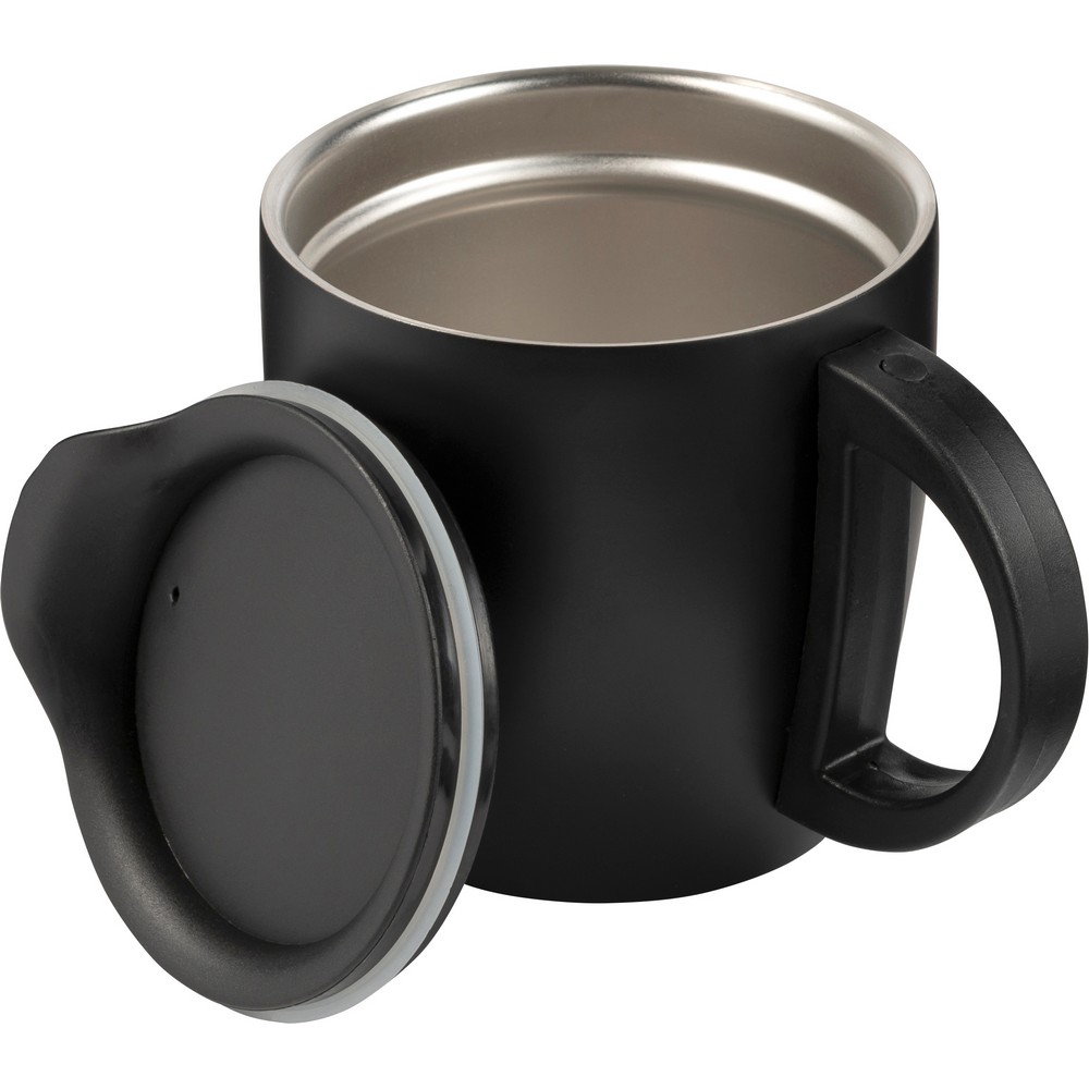 Der doppelwandige Reisebecher ist der ideale Imageträger für Ihre Marke. Mit einem eleganten, schwarzen Design aus hochwertigem Edelstahl sorgt er nicht nur dafür, dass Getränke bis zu 4 Stunden heiß bleiben, sondern auch, dass Ihre Botschaft immer im Fokus steht. Seine kompakte Größe (Ø9,5 cm) und das geringe Gewicht (197 g) machen ihn zum perfekten Begleiter im Arbeitsalltag und bei Events.