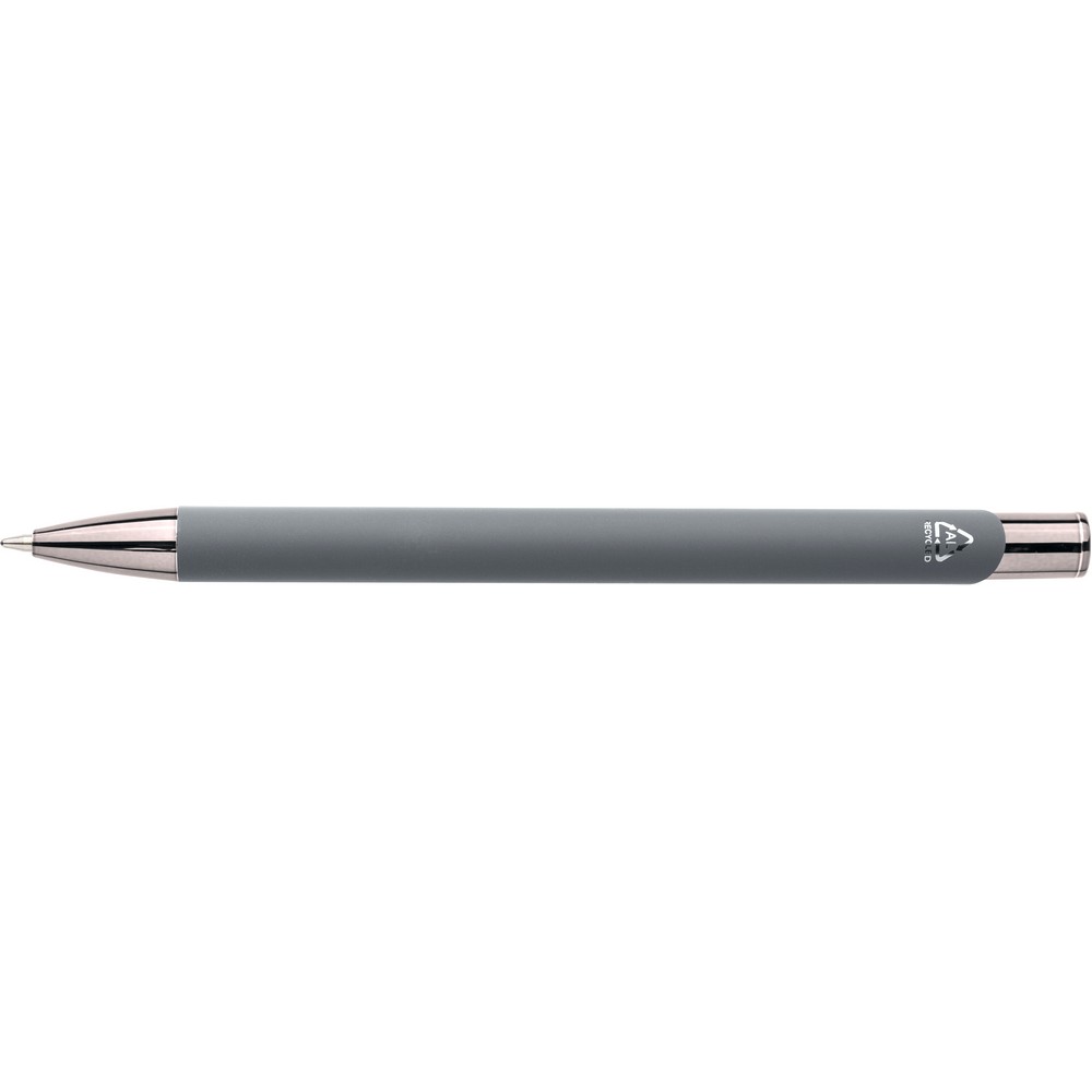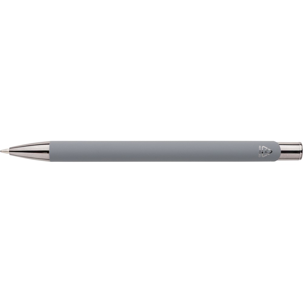 Der metallische Kugelschreiber mit Logo-Druck ist der ultimative Imageträger für Ihre Marke. Mit einem eleganten Design und haptischem Flair verleiht er jeder Botschaft Gewicht und Professionalität. Hergestellt aus recyceltem ABS und Aluminium, kombiniert er Nachhaltigkeit mit hochwertiger Verarbeitung – ideal für umweltbewusste Unternehmen. Seine hohe Schreiblänge von rund 800 Metern und die vielseitigen Farboptionen in Blau, Gold, Grün, Rot, Schwarz, Silber, Grau und Rosa garantieren, dass Ihr Logo stets im Mittelpunkt steht.
