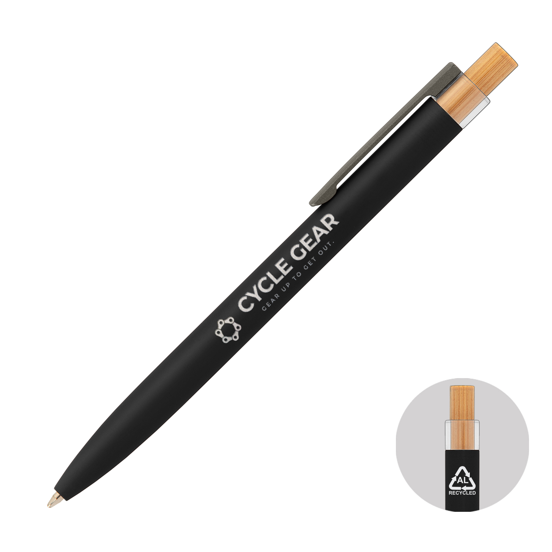 Der „Bamboo Recycling“ Kugelschreiber, gefertigt aus recyceltem Aluminium und ist auch bestens bekannt unter dem Namen „Margo Kugelschreiber Aus Recyceltem Aluminium“. Dieses außergewöhnliche Schreibgerät vereint Innovation und Nachhaltigkeit auf elegante Weise. Es besteht aus recyceltem Aluminium, einem erneuerbaren Bambus-Druckknopf, einem Clip aus Edelstahl und einem Gehäuse aus klarem Recyclingkunststoff (RPET). Mit einer präzisen 0,7-mm-Spitze und einer Parker-Style-Mine, die beeindruckende 1800 Meter Schreiblänge bietet, setzt der „Bamboo Recycling“ neue Maßstäbe für umweltfreundliche und moderne Werbeschreibgeräte.
