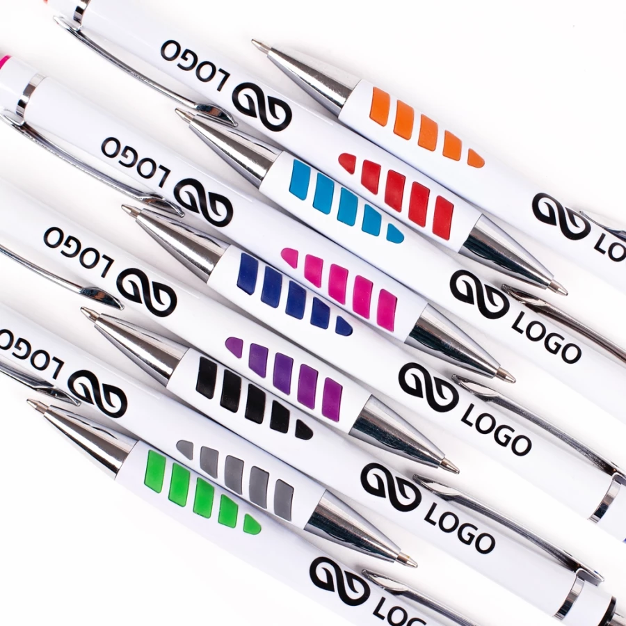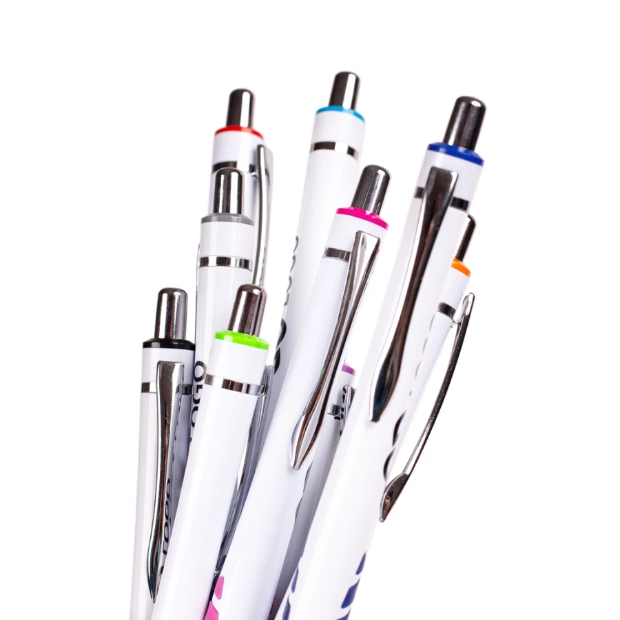 Der Kugelschreiber „Ole“ ist mehr als nur ein Schreibgerät. Seine scheinbar einfache Linienführung, der metallene Clip und die silbernen Akzente verkörpern pure Eleganz. Doch der wahre Hingucker sind die gummierten, rutschfesten Elemente, die mit ihrer intensiven Farbgebung überraschen. Dieser Kugelschreiber ist nicht nur ein praktisches Utensil, sondern auch ein auffälliges Accessoire, das die Aufmerksamkeit auf sich zieht. Mit dem Kugelschreiber „Ole“ wird die alltägliche Schreibarbeit zu einem stilvollen Erlebnis.