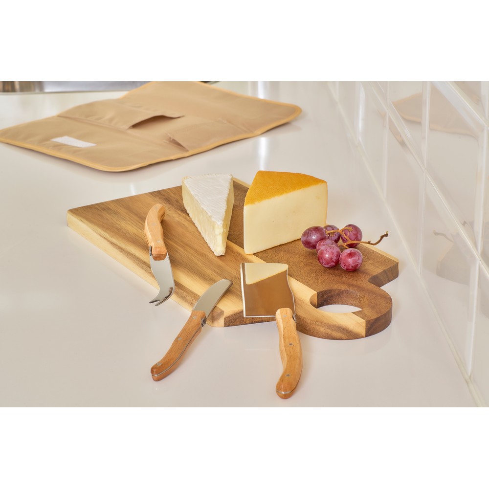 Entdecken Sie das RPET Aufschnittset – das perfekte Werbemittel für Marken, die Eindruck hinterlassen möchten. In einer ansprechend designten Tasche aus hochwertigem RPET verbirgt sich eine Auswahl von drei eleganten, lebensmittelechten Edelstahlmessern mit stilvollen Holzgriffen. Jedes Set wird individuell in einer ansprechenden, braunen Verpackung geliefert und lässt sich mühelos mit Ihrem Logo veredeln.