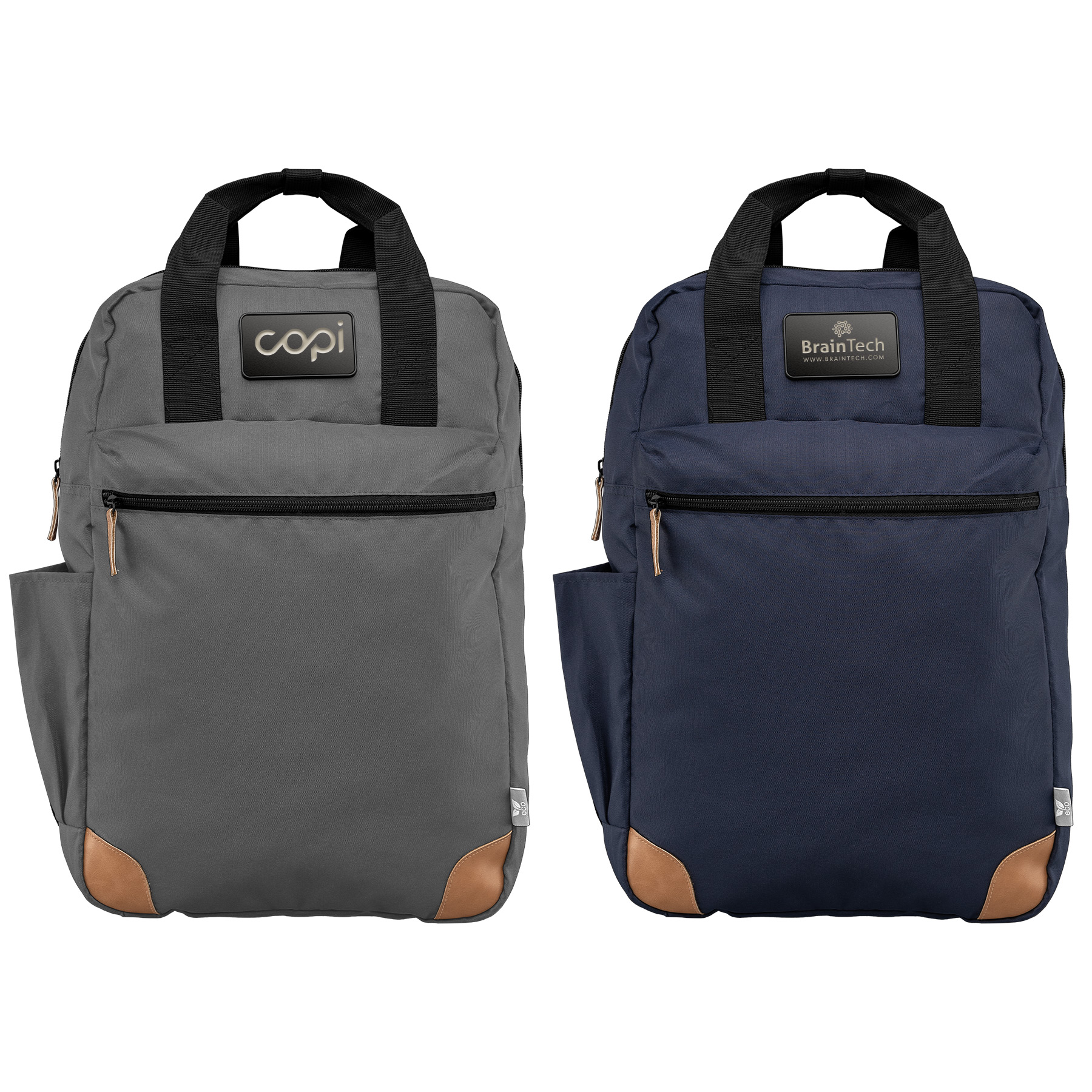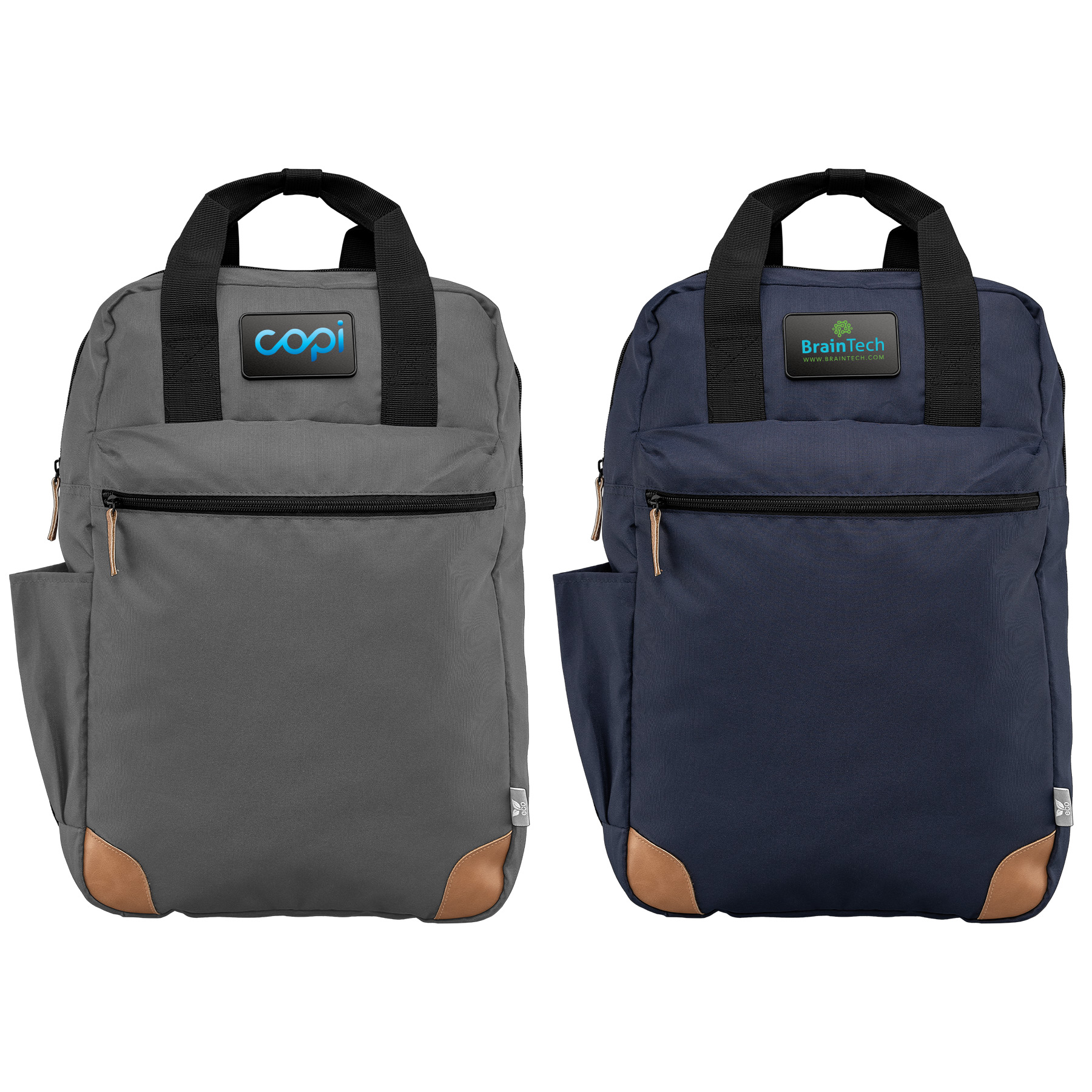 Jetzt ist ein erstklassiger Rucksack Kemi erhältlich! Unser Rucksack aus 300D rPET aus der promoclassics® Kollektion verfügt über ein Reißverschluss-Hauptfach mit einem gepolsterten Laptop-Fach, das Platz für ein 381 mm großes Notebook bietet. Für zusätzlichen Stauraum sorgen der Front-Reißverschluss und die seitlichen Eingrifftaschen. Die gepolsterten, verstellbaren Tragegurte, der elastische Trolley-Riemen auf der Rückseite sowie die beiden Tragegriffe aus schwarzem Gurtband auf der Oberseite machen das Tragen dieses 13-Liter-Rucksacks, der bis zu 8 kg Gewicht tragen kann, besonders komfortabel. Der moderne Farbhintergrund und die hellbraunen Akzente verleihen Ihrer Werbebotschaft einen stilvollen und hochwertigen Look.