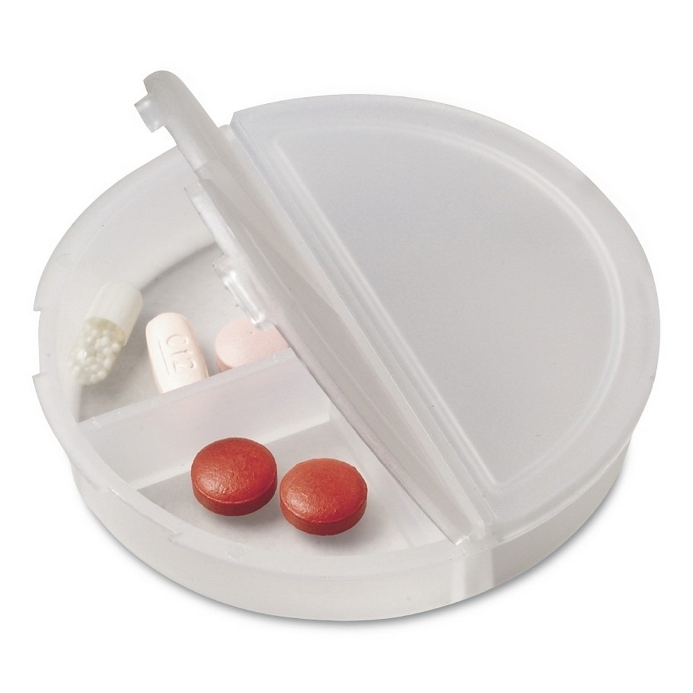 Entdecken Sie mit unserem praktischen Tablettenbehälter mit 3 Fächern den idealen Werbeartikel für Ihr Unternehmen. Mit einem Durchmesser von 7,5 cm und einem federleichten Design aus hochwertigem PP ist dieses Produkt nicht nur funktional, sondern auch ein eleganter Imageträger für Ihre Marke. Die haptische Erfahrung und die Möglichkeit zur individuellen Tampondruck-Werbeanbringung garantieren eine langfristige Sichtbarkeit Ihres Logos im Alltag der Beschenkten.