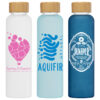 Die Aqua 590 ml Flasche aus gefrostetem Borosilikatglas mit Bambusdeckel setzt neue Maßstäbe für umweltbewusste Marken. Diese stilvolle Trinkflasche kombiniert Luxus mit Funktionalität und ist der perfekte Werbeartikel für moderne Unternehmen, die ihre Marke verantwortungsbewusst präsentieren möchten. Hochwertig und dennoch erschwinglich – eine ideale Wahl für professionelle Werbung. Nur Handwäsche empfohlen. Verpackt in einer eleganten Geschenkbox.